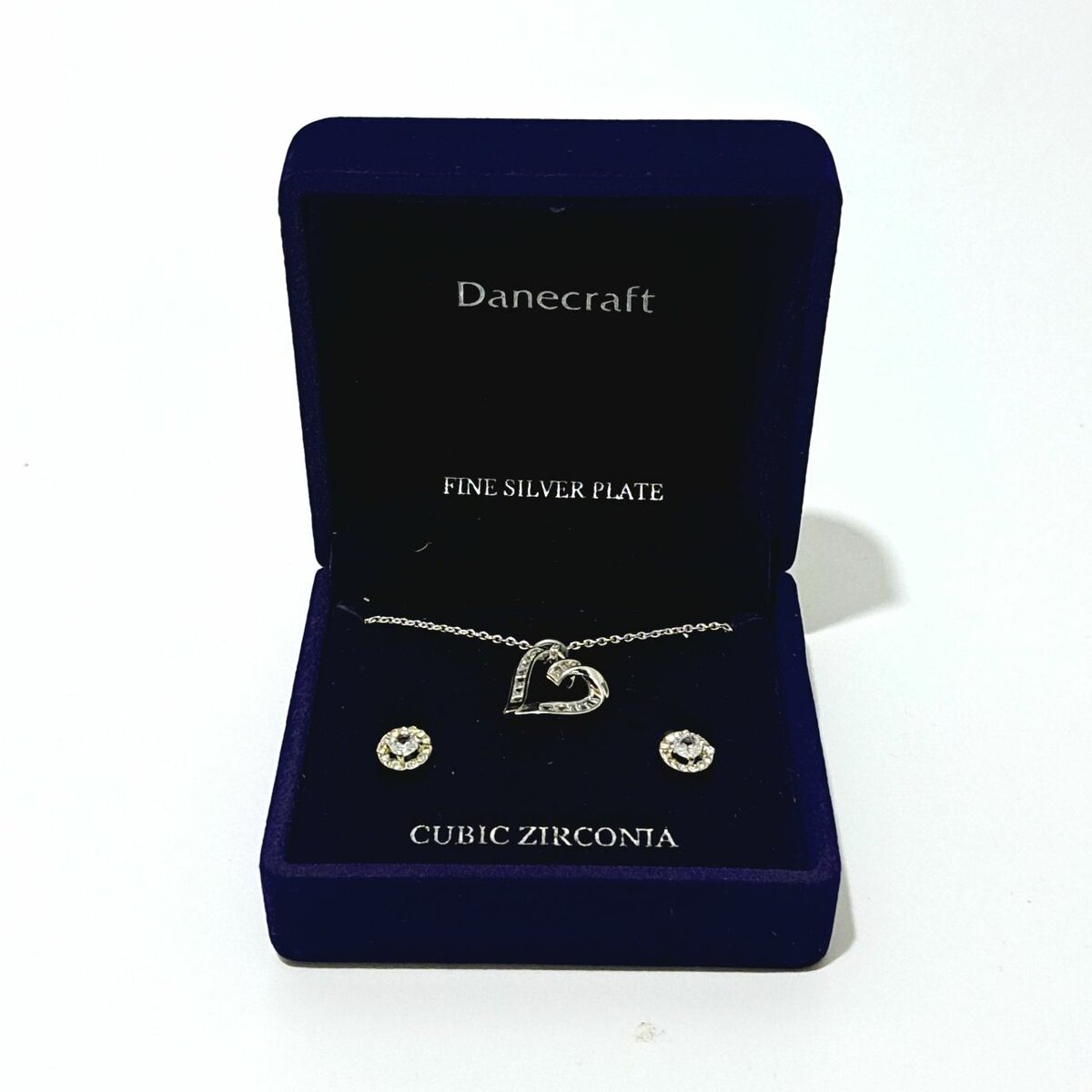 Élégant set collier et boucles d'oreilles en argent plaqué avec zircons. Idéal pour les occasions spéciales ou comme cadeau. Apportez une touche raffinée à votre style avec ce design en forme de cœur.