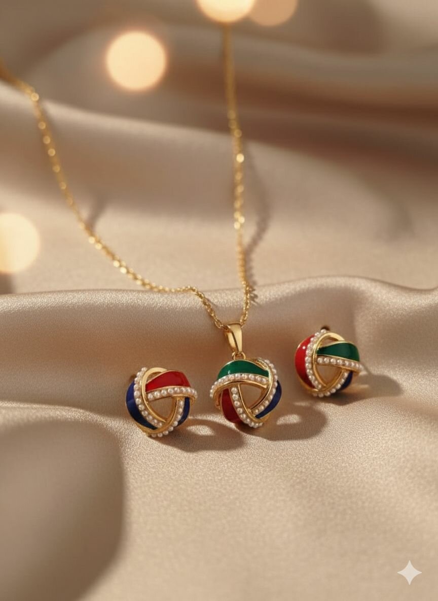 Mettez en valeur votre élégance avec ce magnifique ensemble de collier et boucles d'oreilles aux pierres colorées.