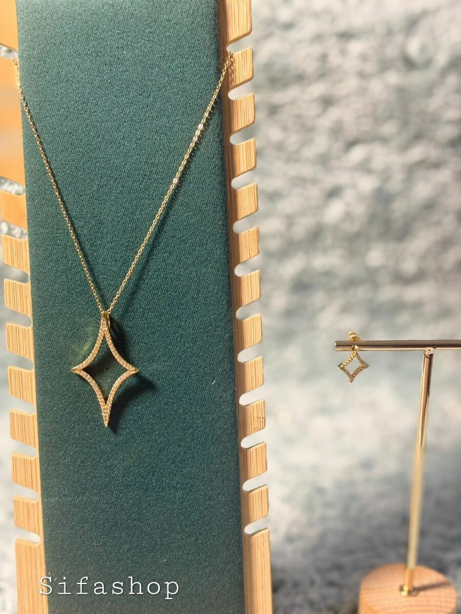 Élégant ensemble collier et boucles d'oreilles en forme d'étoile. Conçu pour briller lors de toutes occasions, cet ensemble chic apporte une touche de glamour à votre style. Idéal pour compléter une tenue élégante ou offrir en cadeau spécial.