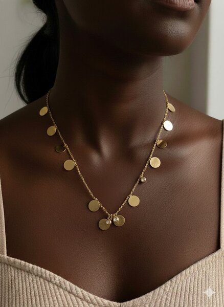 Ajoutez une touche d'élégance subtile à votre tenue avec ce collier minimaliste en or. Parfait pour toutes les occasions, il complète idéalement votre style quotidien ou vos looks plus raffinés. Un choix intemporel pour chaque femme.