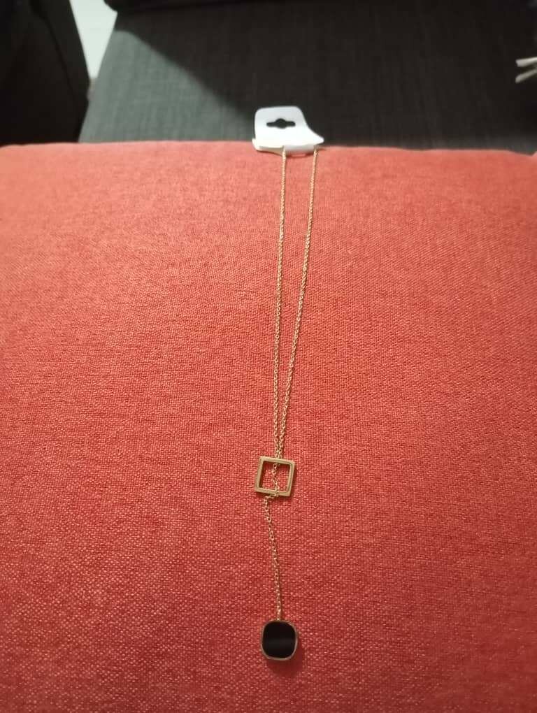 Ce superbe collier minimaliste en or et noir est l'accessoire idéal pour compléter votre tenue. Avec son design élégant, il convient à toutes les occasions. Idéal pour un look moderne et chic.