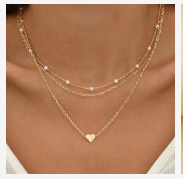 Ce collier multi-rangs en or avec pendentif cœur est parfait pour ajouter une touche d'élégance à votre tenue. Idéal pour les occasions spéciales et le quotidien, il combine délicatesse et style moderne. Chaque chaîne est ornée de perles pour un look raffiné.
