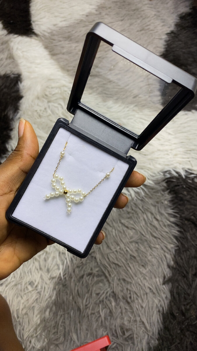 Ce collier raffiné arbore un pendentif en forme de nœud, orné de perles délicates, parfait pour ajouter une touche d'élégance à toute tenue. Idéal pour des occasions spéciales ou pour offrir en cadeau, ce bijou apportera une élégance subtile et intemporelle. Optez pour un style sophistiqué avec ce bijou unique et élégant.