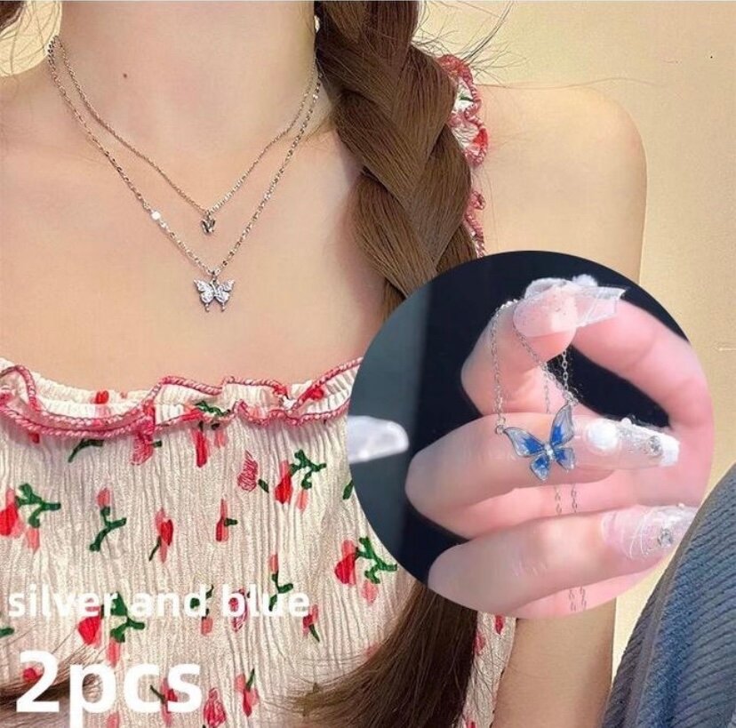 Sublimez votre style avec ce collier papillon argent et bleu. Parfait pour un look élégant et féminin, il se compose d'une chaîne double et d'un pendentif papillon enchanteur. Idéal pour toutes les occasions!