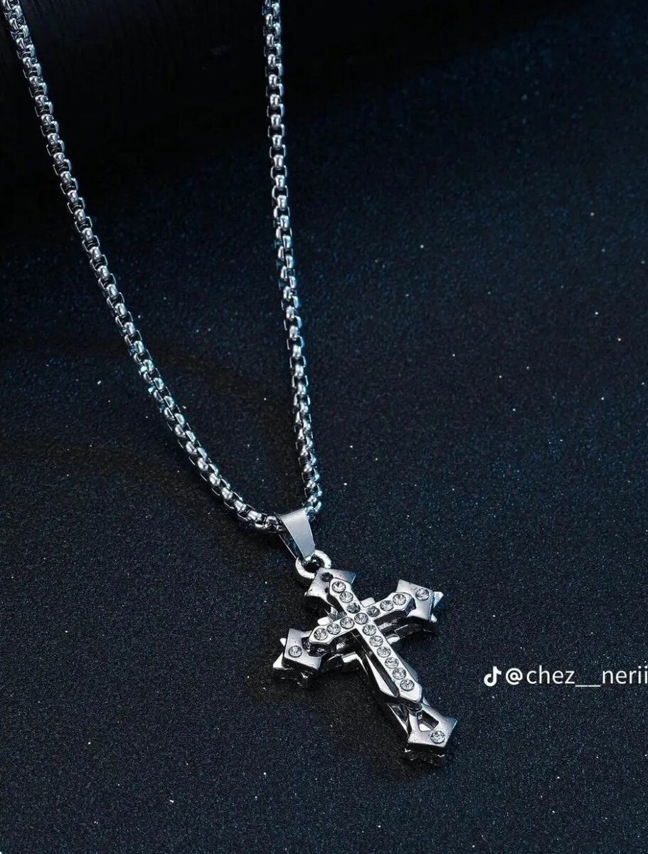 Élégant collier en acier inoxydable avec pendentif croix ou ancre. Parfait pour un look moderne.