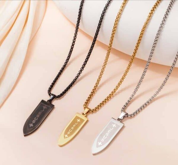 Élégant collier avec pendentif gravé 'Jésus', parfait pour exprimer votre foi. En plaqué or, il rehausse n'importe quelle tenue avec une touche spirituelle et sophistiquée. Idéal pour les cadeaux spirituels ou pour un usage quotidien.
