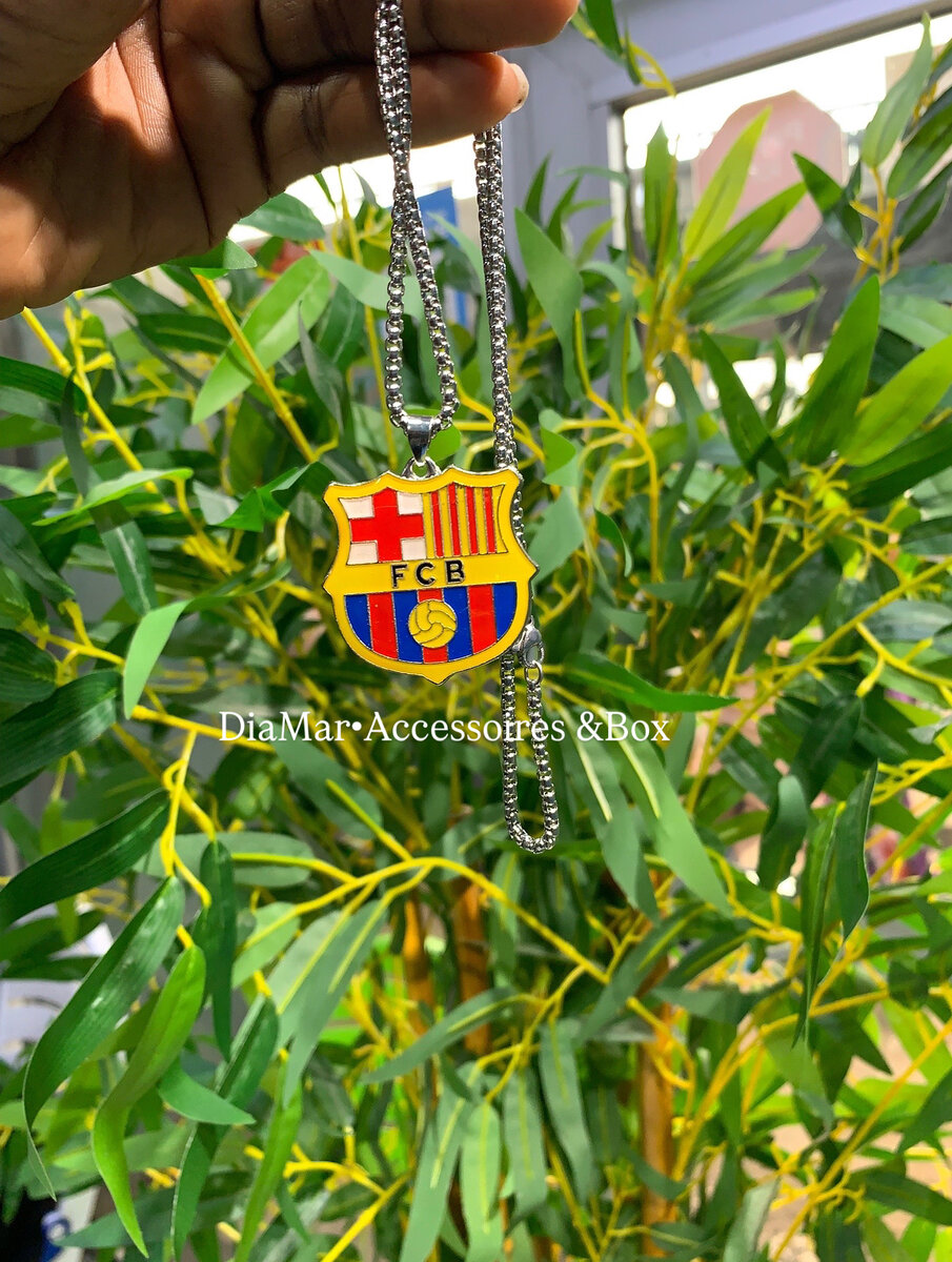 Montrez votre passion pour le football avec ce collier pendentif emblématique du FC Barcelone. Idéal pour les fans dévoués, il se porte fièrement au quotidien ou lors des matchs. Fabriqué avec soin pour offrir durabilité et style.