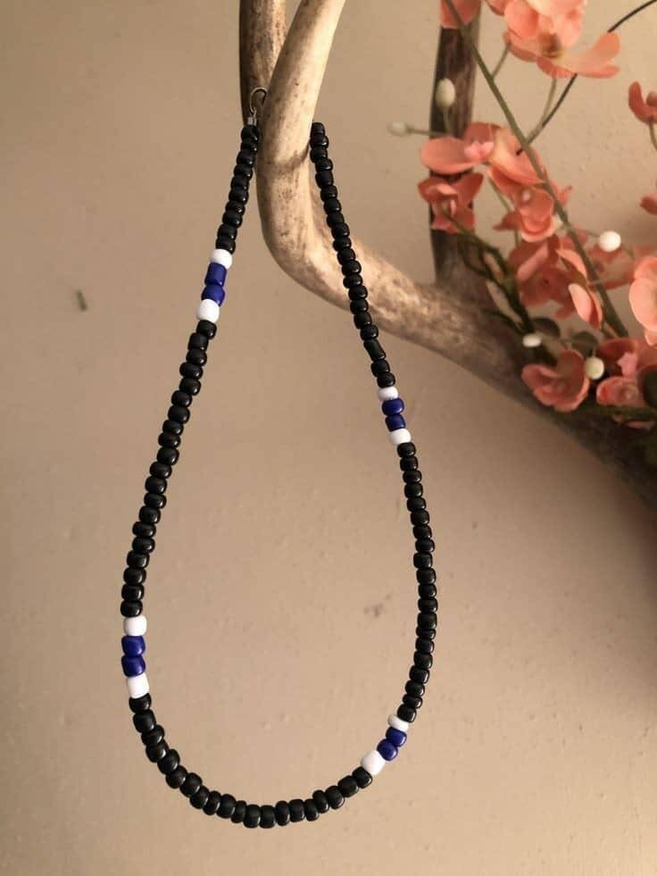 Élégant collier de perles noir et bleu, parfait pour ajouter une touche de couleur unique à votre tenue. Idéal pour un usage quotidien ou pour des occasions spéciales. Fait main avec des matériaux de haute qualité, il offre style et durabilité. Sublimez votre look avec ce bijou incontournable.