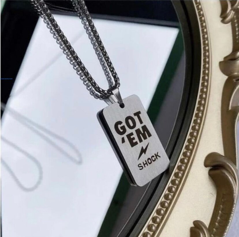 Ce collier à plaque en acier inoxydable est à la fois moderne et audacieux, parfait pour affirmer votre style. Avec son design élégant et son inscription unique "Got 'Em Shock", il attire tous les regards. Idéal pour les amateurs de mode qui cherchent à se démarquer. Portez-le en toute occasion pour un look tendance et inspirant.