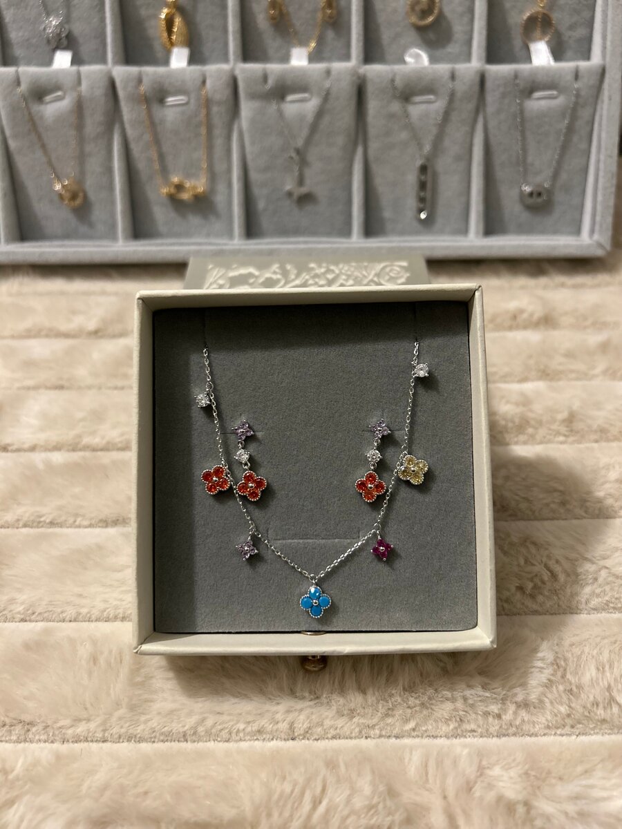 Adoptez ce magnifique collier avec pendentifs en forme de fleurs colorées, idéal pour ajouter une touche de gaieté à votre tenue. Parfait pour les occasions spéciales ou au quotidien, ce bijou est un excellent choix pour les femmes qui aiment se démarquer avec élégance.