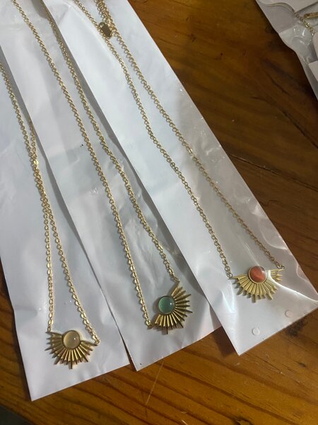 Ce collier en or avec un pendentif en forme de soleil est le choix parfait pour ajouter une touche de chaleur et de style à votre tenue. Fabriqué avec soin, il est idéal pour les occasions spéciales ou les tenues quotidiennes. Portez-le pour illuminer votre journée.