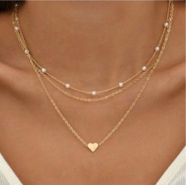 Ce collier superposé élégant combine chaînes dorées délicates, ornées de perles raffinées et d'un pendentif cœur. Parfait pour rehausser n'importe quelle tenue avec une touche de sophistication et de romance. Idéal pour les occasions spéciales ou un usage quotidien chic.
