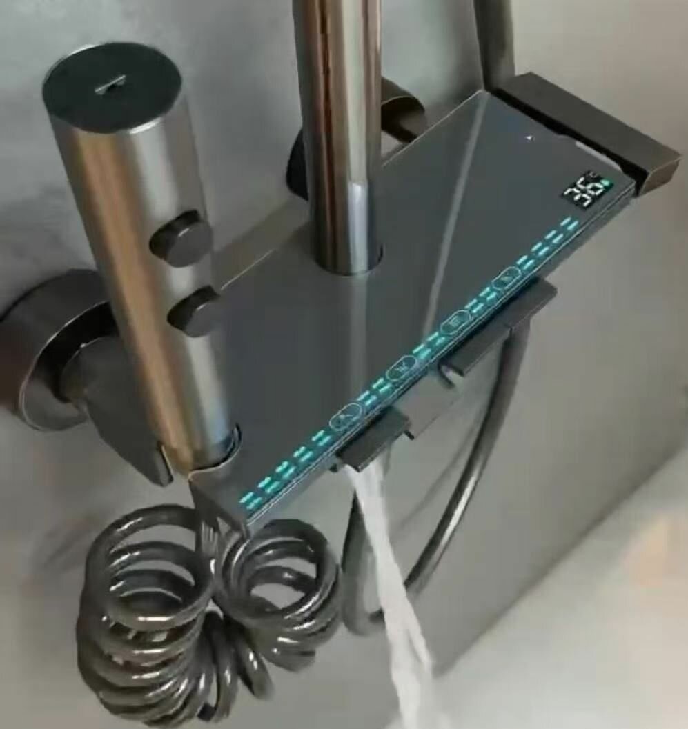 Améliorez votre salle de bain avec cette colonne de douche numérique moderne. Avec un design élégant en acier inoxydable, elle intègre un écran LED affichant la température pour un confort optimal. Idéale pour une expérience de douche luxueuse et technologique. Convient parfaitement aux salles de bain modernes.