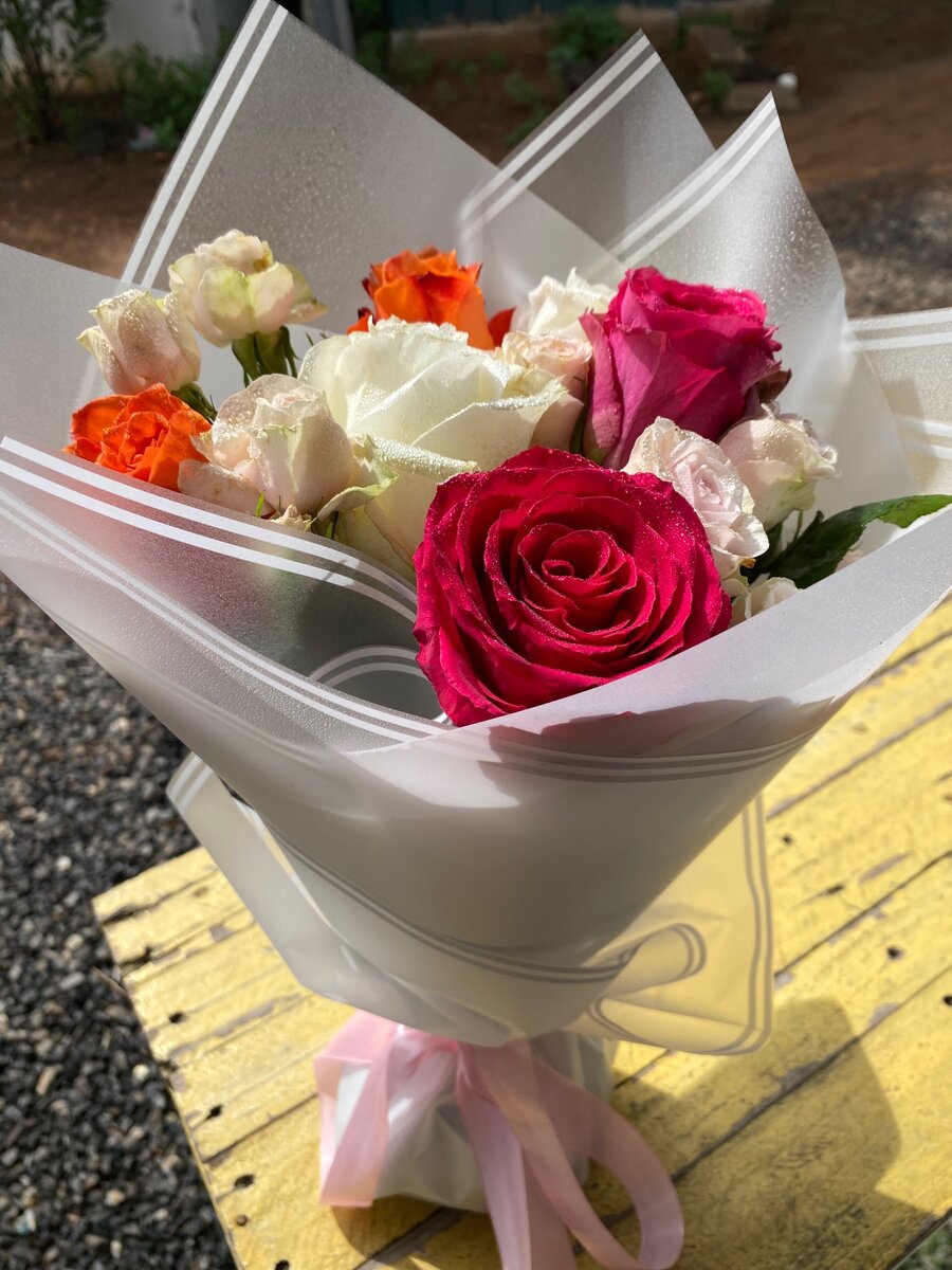 A small bouquet of different colored roses