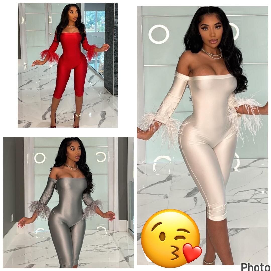 Découvrez cette combinaison sensationnelle avec détail à plumes, idéale pour une soirée glamour. Confortable et séduisante, elle épouse vos formes tout en offrant une allure sophistiquée. Disponible en rouge vibrant, elle est parfaite pour se démarquer lors de vos événements spéciaux et célébrations.