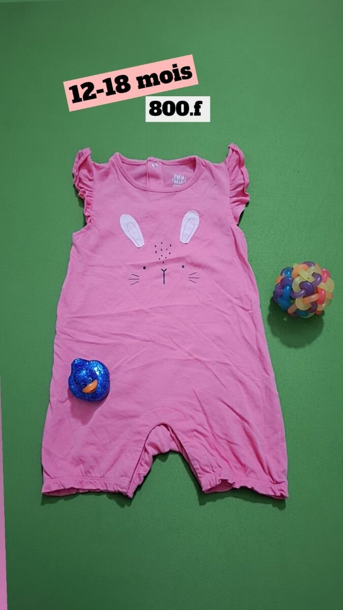 Adorable combinaison rose pour bébé avec motif lapin. Confortable pour les bébés de 12 à 18 mois. Parfaite pour les journées chaleureuses, facile à enfiler et amusante à porter.