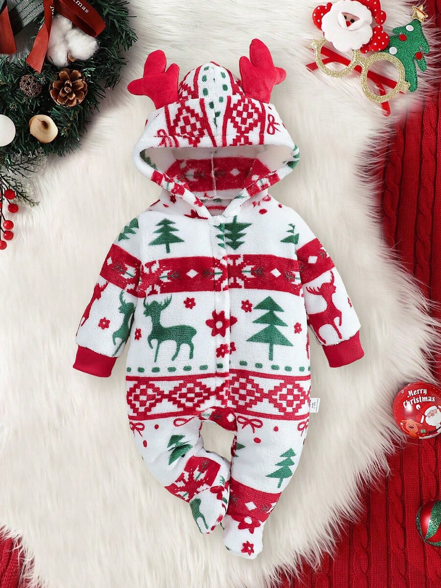 Adorable combinaison de Noël pour bébé, idéale pour célébrer les fêtes. Design festif avec motifs de rennes et de Noël, doux et confortable pour votre petit. Parfaite pour les photos de famille et les moments magiques.