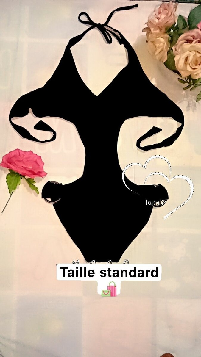 Maillot de bain une pièce noir pour femme, taille standard. Conçu pour une silhouette élégante, ce vêtement de plage est idéal pour la plage ou la piscine. Léger et confortable.
