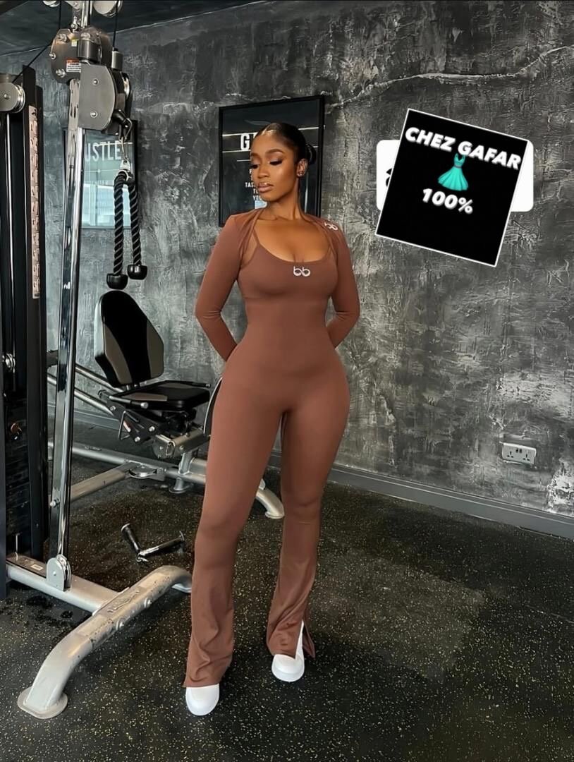 Optez pour cette élégante combinaison de fitness pour femme, parfaite pour les séances d'entraînement ou les activités décontractées. Conçue dans un tissu extensible et confortable, elle offre une grande liberté de mouvement. Idéale pour un look sportif et chic à la salle de sport ou lors de vos sorties décontractées.
