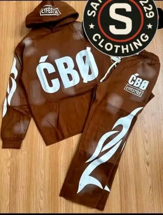Combinaison de survêtement pour homme en couleur marron avec capuche et logo imprimé.