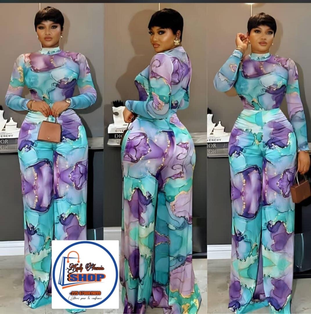 Découvrez cette combinaison chic et élégante aux motifs vibrants. Parfaite pour une soirée ou un événement spécial, elle souligne élégamment votre silhouette. Conférez-vous un look unique et sophistiqué avec ce tissu fluide et coloré. Idéale pour captiver et séduire.