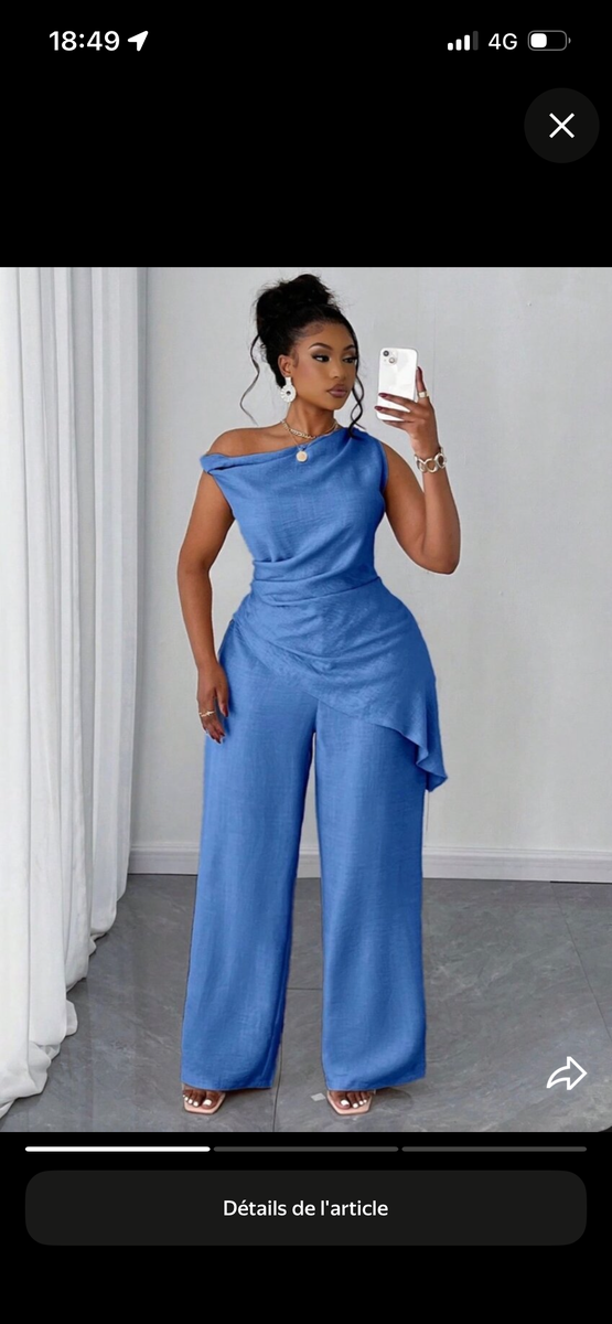 Optez pour cette magnifique combinaison bleue, idéale pour événements et soirées. Son tissu doux et sa coupe flatteuse accentuent votre silhouette. Parfaite pour un look chic et sophistiqué.
