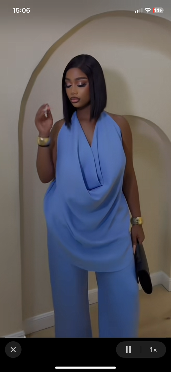 Découvrez notre élégante combinaison bleu ciel, parfaite pour une soirée ou un événement spécial. Avec sa coupe fluide et moderne, elle offre un look chic et sophistiqué. Associée à un sac à main élégant, cette tenue est un incontournable pour toute garde-robe.