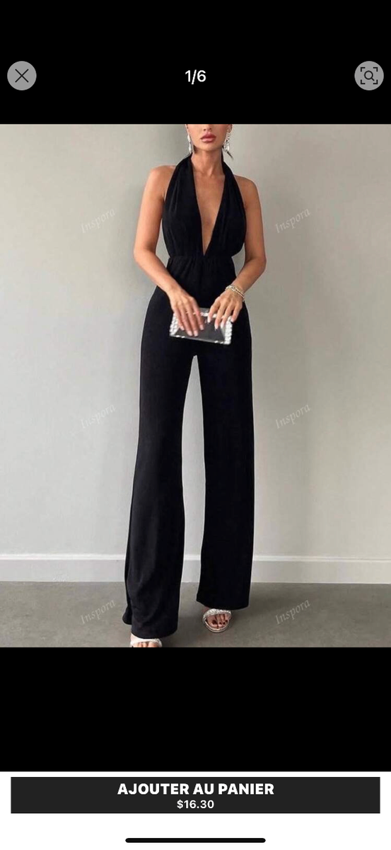 Cette combinaison élégante noire pour femme, dotée d'un design dos-nu, est parfaite pour une soirée chic.