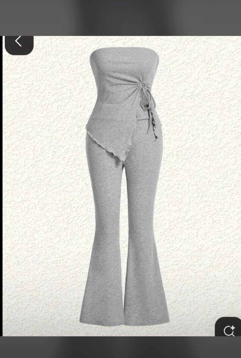 Optez pour cette élégante combinaison grise sans bretelles. Parfaite pour des soirées chics ou un look décontracté, elle allie confort et style. Sa coupe ajustée met en valeur la silhouette, tandis que le détail froncé ajoute une touche féminine. Idéale pour toute garde-robe moderne!
