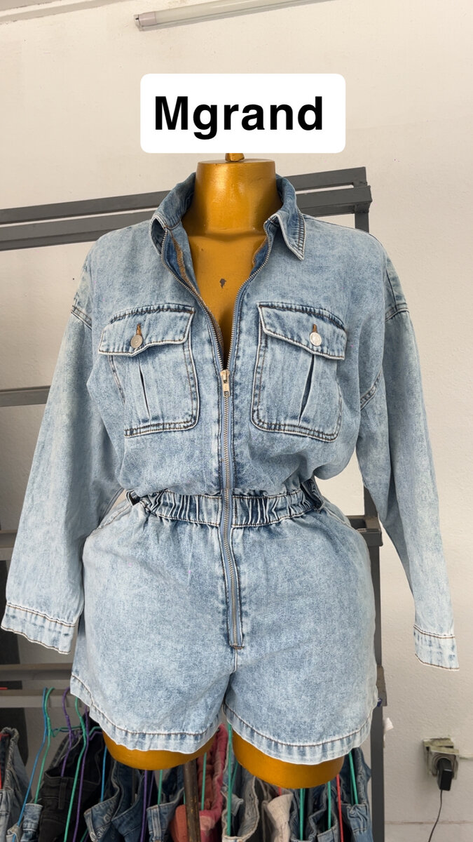 Combinaison en jean pour femme de la marque Mgrand. Moderne et confortable. Idéale pour les sorties décontractées.