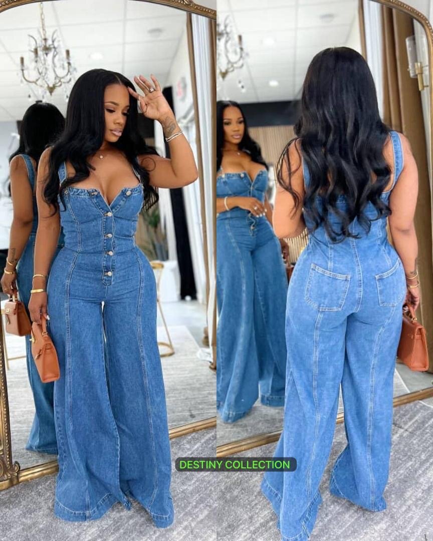 Combinaison en jean pour femmes de la collection DESTINY. Conçue pour un look chic et moderne, cette combinaison présente un style élégant avec des détails soignés. Parfaite pour les occasions spéciales ou une sortie décontractée.