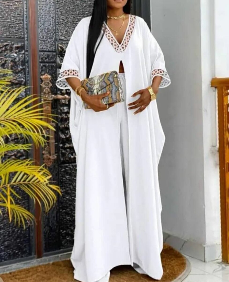 Découvrez cette combinaison femme africaine blanche, un vêtement ample et élégant, conçu pour un confort optimal. Idéale pour les occasions spéciales ou pour une tenue décontractée.