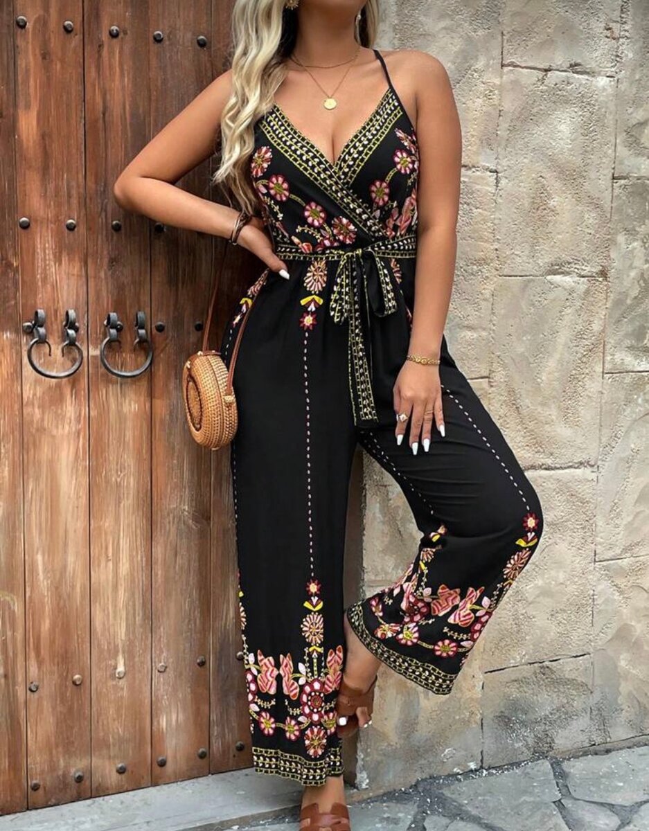 Optez pour cette combinaison noire à motifs floraux pour une allure chic et confortable. Parfaite pour l'été, elle offre style et élégance en toute simplicité.