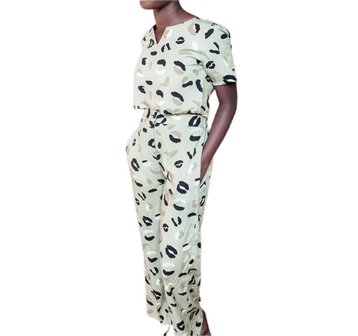 Ajoutez une touche de style félin à votre garde-robe avec cette élégante combinaison à imprimé léopard. Idéale pour un look chic décontracté, elle offre un confort maximal grâce à sa coupe ample et des matériaux doux. Parfaite pour une soirée entre amis ou une sortie en ville, cette combinaison est un must-have pour les fashionistas en quête d'originalité.