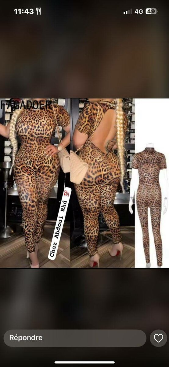 Transformez votre look avec cette combinaison léopard audacieuse. Confectionnée pour mettre en valeur vos courbes, elle est idéale pour une soirée glamour ou une sortie spéciale. Son dos ouvert ajoute une touche de sensualité à ce design tendance.