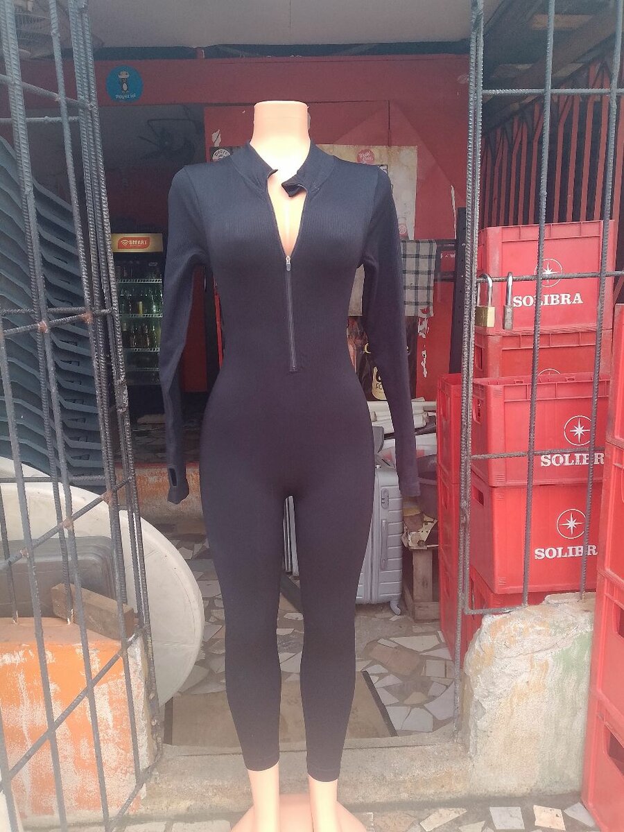 Découvrez cette combinaison noire élégante, idéale pour un look chic et moderne. Confectionnée avec des matériaux de haute qualité, elle est parfaite pour une soirée ou une sortie spéciale. Son design ajusté met en valeur la silhouette, tandis que la fermeture éclair centrale permet un habillage facile. Excellent choix pour celles qui cherchent à faire une déclaration de mode audacieuse.
