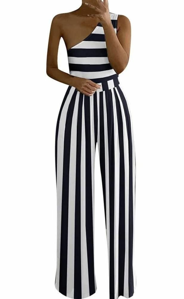 Optez pour un look audacieux avec cette combinaison rayée asymétrique. Parfaite pour une soirée estivale ou une sortie en ville, elle allie confort et style moderne. Le motif rayé allonge la silhouette, tandis que la coupe sans manches offre une touche décontractée chic.