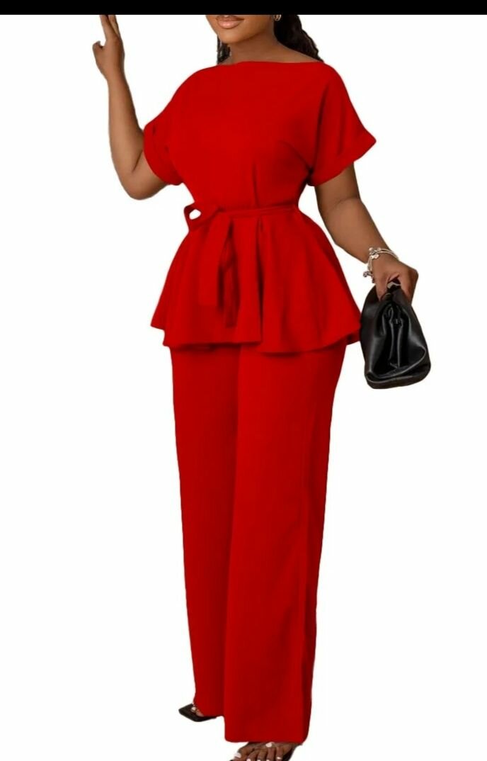 Élégante ensemble 2 pièces rouge avec ceinture, idéale pour des occasions spéciales ou un look de bureau chic. Confortable et stylée, elle offre une coupe flatteuse pour toutes les silhouettes. Parfaite pour faire une déclaration audacieuse.