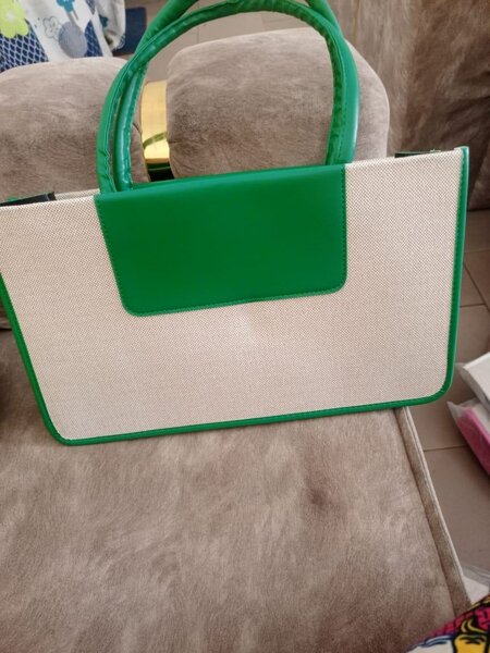 Sac à main vert et blanc en toile