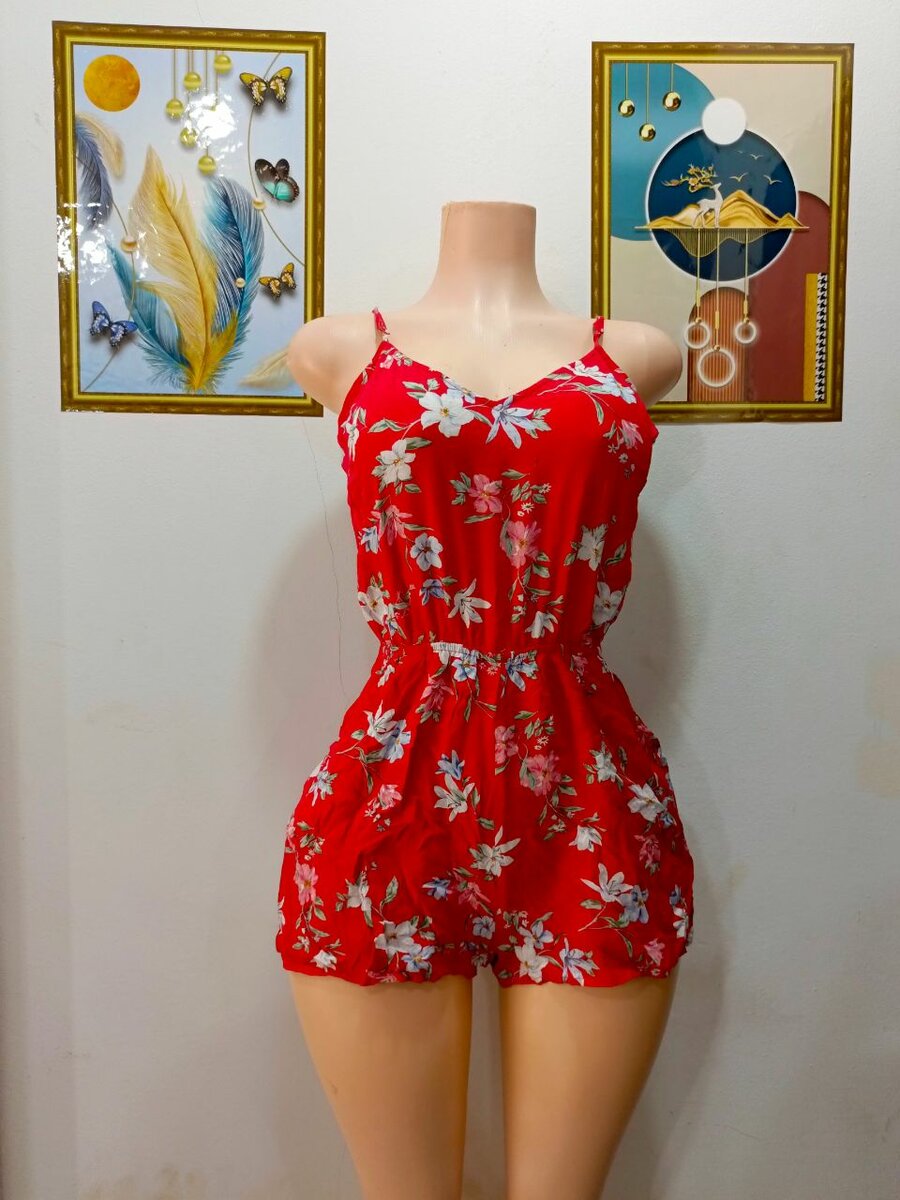 Sublimez votre style estival avec ce combishort rouge à imprimé floral. Léger et confortable, il est parfait pour les journées ensoleillées. Idéal pour les sorties décontractées ou les vacances à la plage.