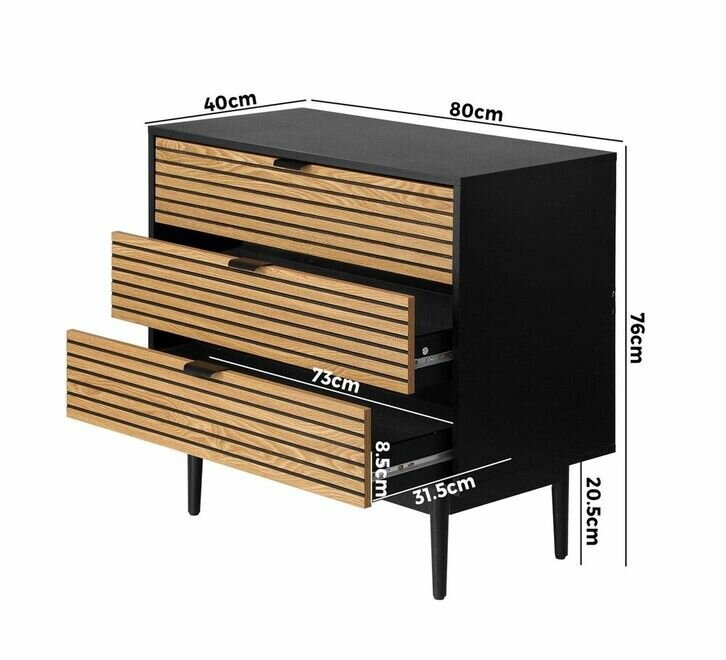Cette élégante commode allie design moderne et fonctionnalité avec ses trois tiroirs spacieux. Parfaite pour la chambre ou le salon, elle offre un espace de rangement optimal tout en ajoutant une touche de sophistication à votre intérieur.