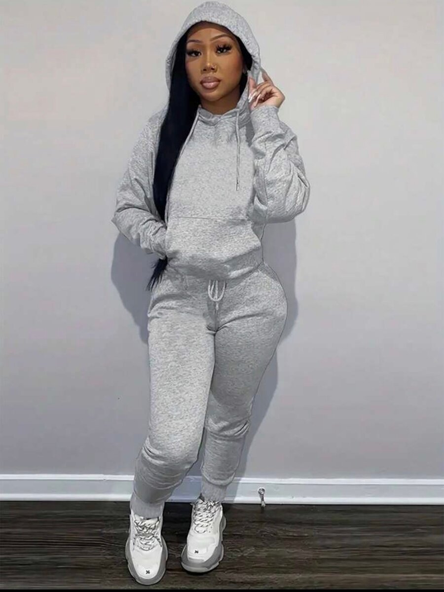 Découvrez le confort et la simplicité avec ce survêtement en gris chiné pour femme. Parfait pour les journées décontractées, il offre une coupe ajustée et un tissu doux idéal pour rester à l'aise tout en ayant du style. L'ensemble comprend un sweat à capuche et un pantalon à cordon de serrage, parfait pour le sport ou la détente à la maison. Idéal pour un look casual moderne.