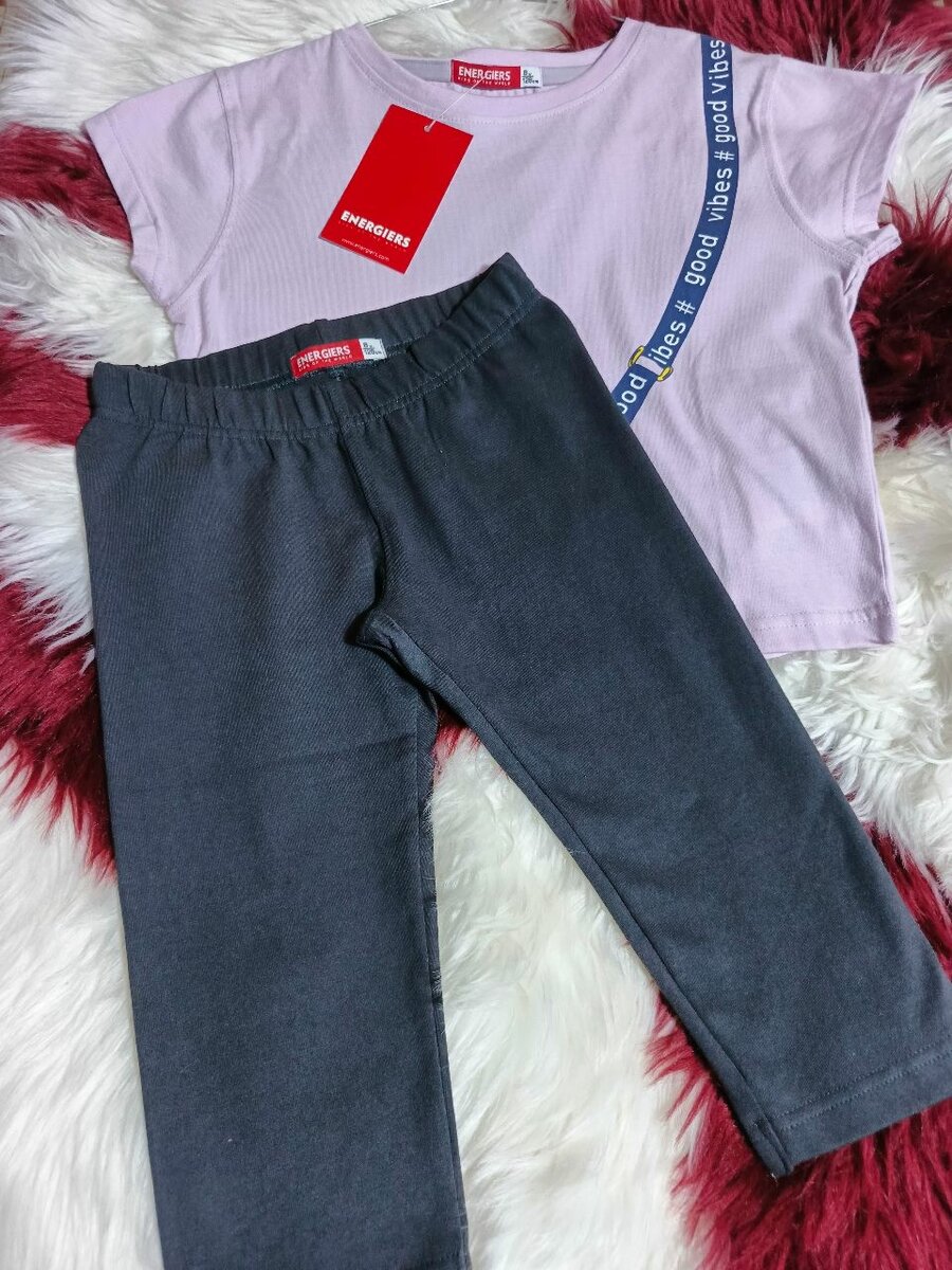 Complet tendance pour fille avec imprimé 'Good Vibes' et design coloré. Confortable et parfait pour casual wear. Associez un pantalon pour un look stylé.