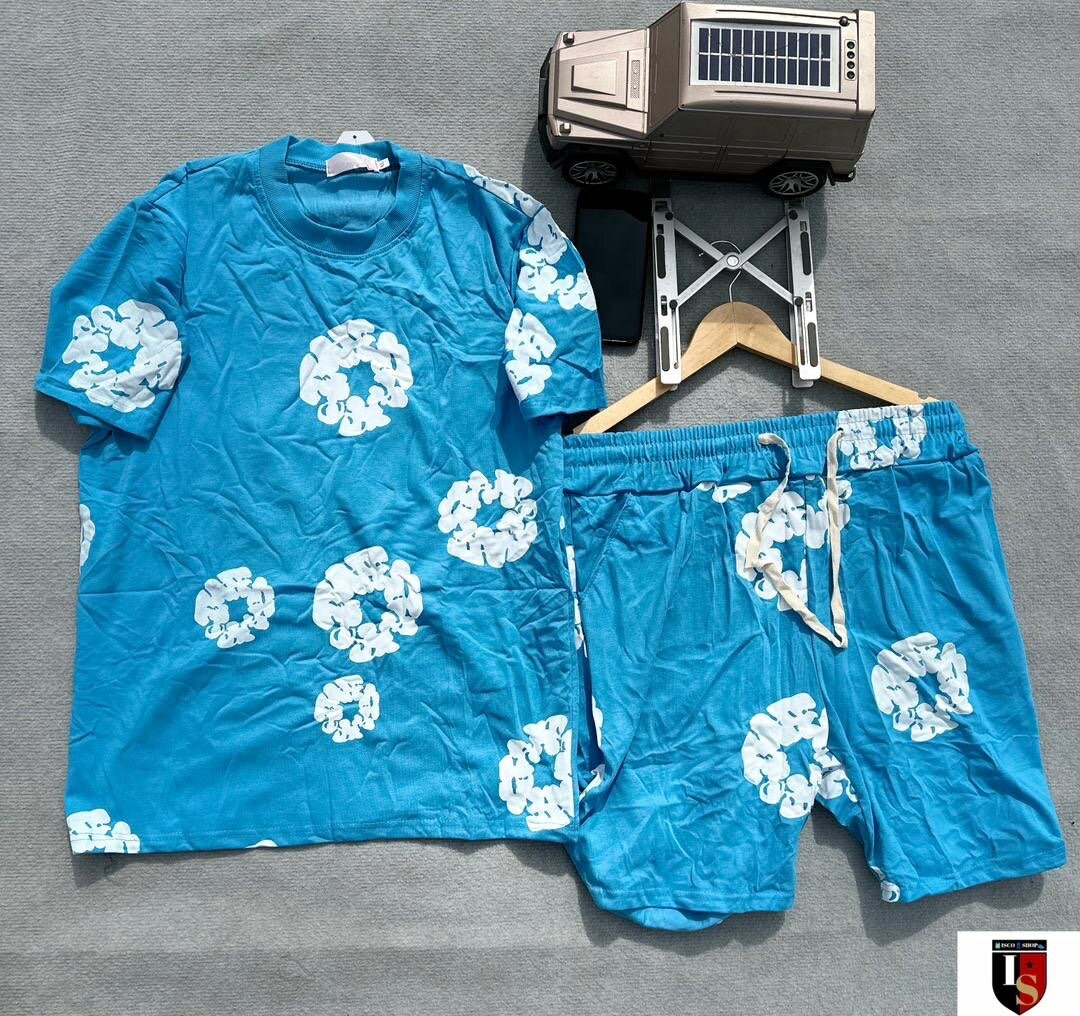 Ensemble homme jaune fleurs blanches