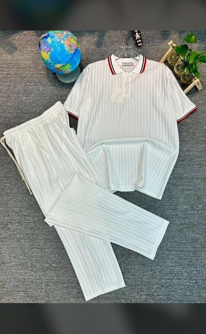 Ensemble polo et pantalon rayé
