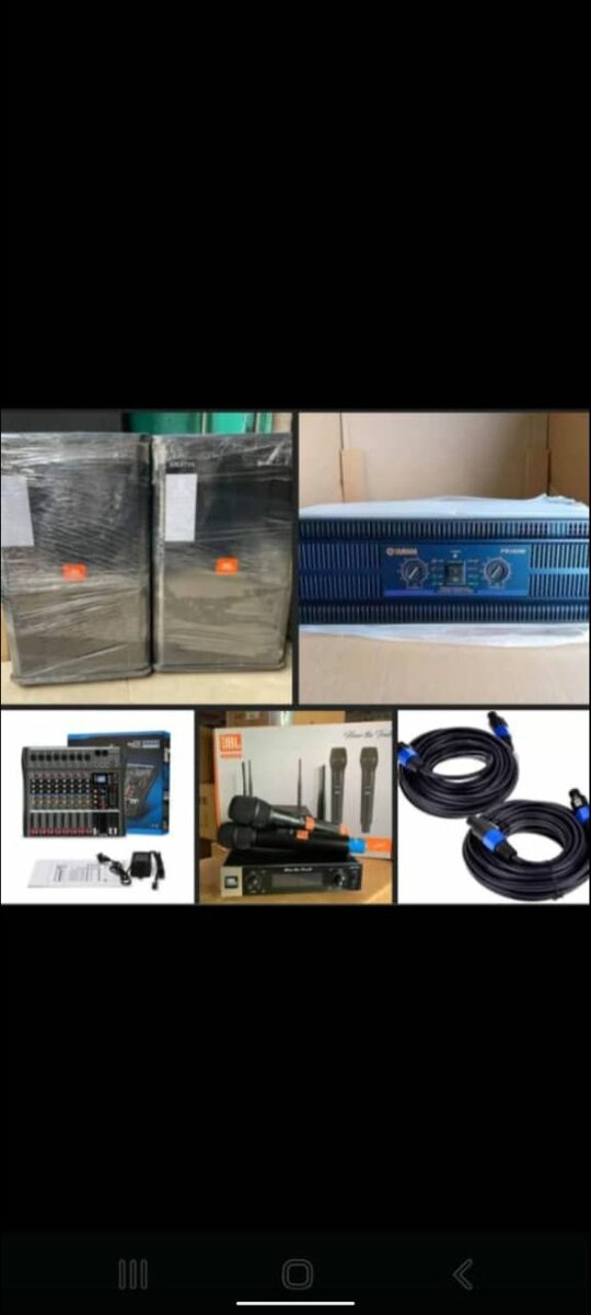 Enhance your events with this powerful complete audio system set. It includes speakers, a mixer, microphones, and all necessary cables. Ideal for concerts, presentations, and gatherings. Reliable and high-quality for professional sound.