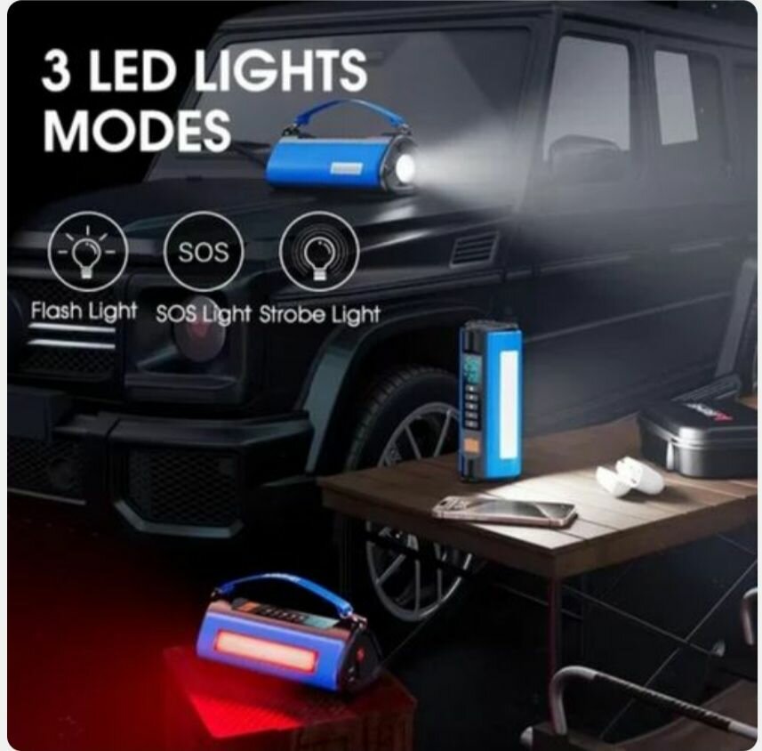 Découvrez notre compresseur d'air multifonction avec lampes LED intégrées. Idéal pour les urgences routières, il offre trois modes d'éclairage et une puissance de gonflage efficace. Compact et facile à transporter, il est l'accessoire parfait pour les automobilistes prévoyants.