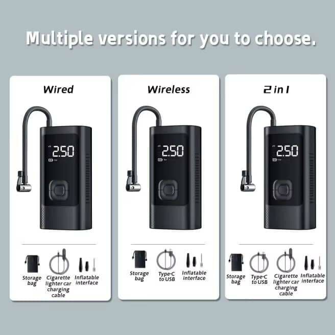 Ce compresseur d'air portatif est parfait pour gonfler vos pneus rapidement et facilement, peu importe où vous êtes. Compact et léger, il est idéal pour les déplacements. Fonctionne sans fil avec une interface intuitive et des câbles de chargement inclus. Profitez d'une utilisation sans tracas que vous optiez pour la version câblée ou sans fil.