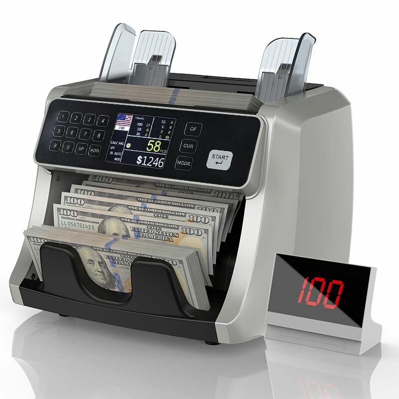 Compteur de billets efficace avec détection UV et magnétique. Idéal pour les commerces et bureaux, il compte et détecte les faux billets rapidement et avec précision.