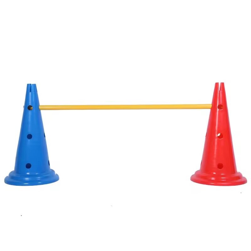 Cônes de signalisation en plastique pour entraînement sportif. Idéal pour créer des parcours d'agilité et des exercices de coordination. Utilisation en extérieur, parfait pour les clubs sportifs et les écoles.
